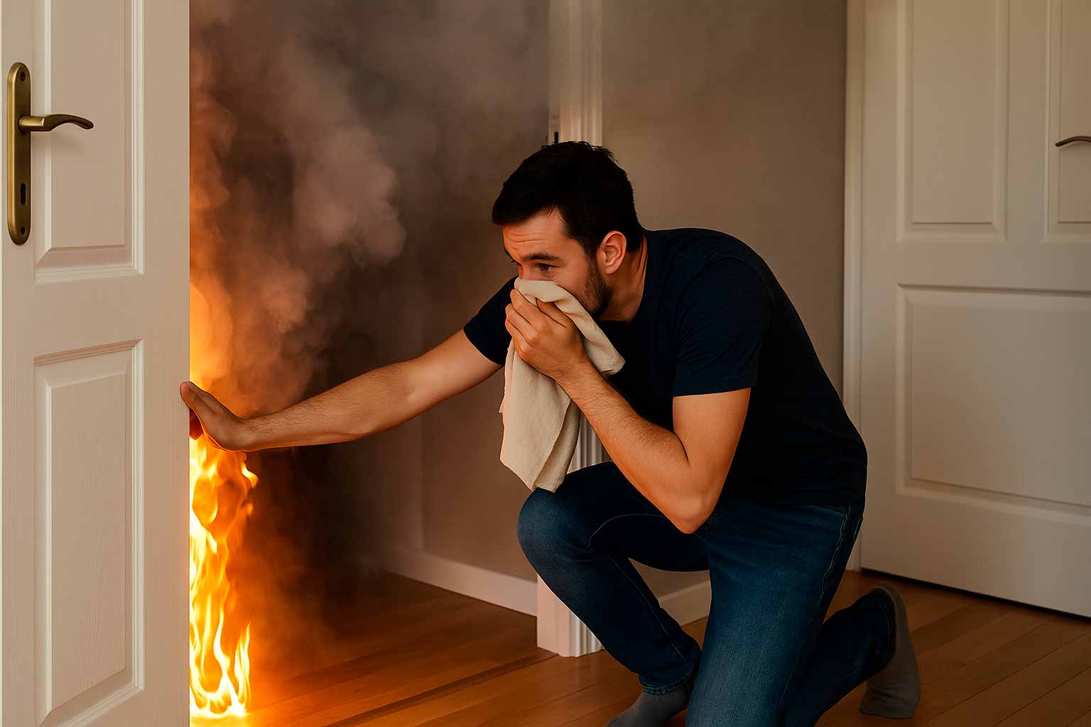 - Evita abrir puertas calientes o con humo evidente al otro lado.